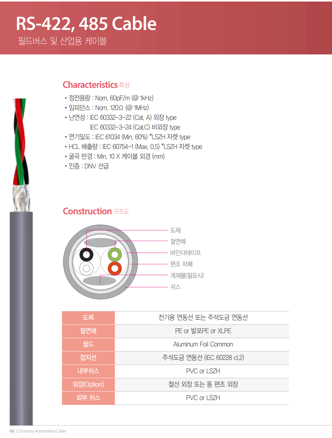 LS전선 LIREV-AMESB AWG18(0.75SQ) 1Pair 300M RS-485통신선
