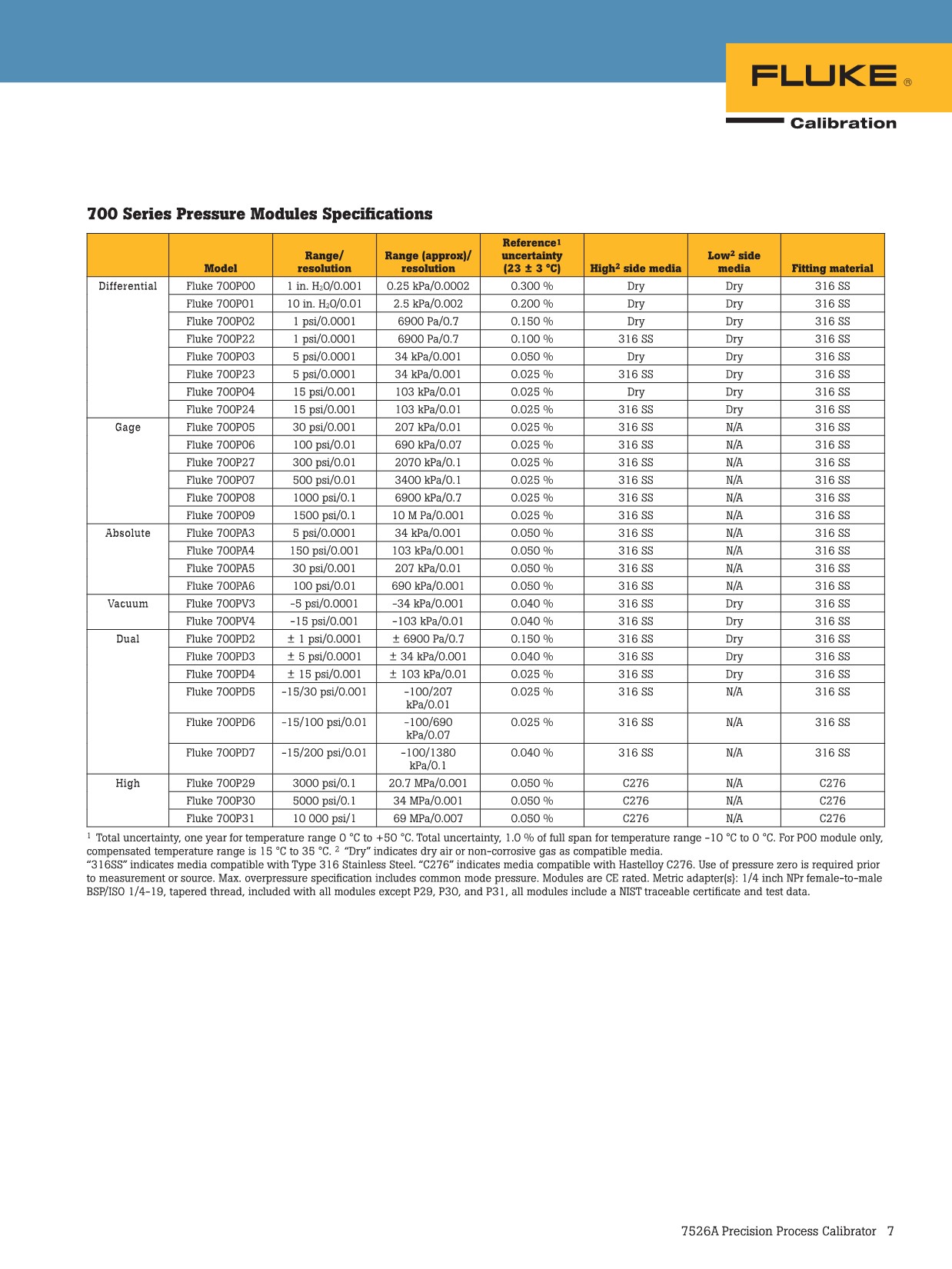 The Fluke Calibration 7526A Precision Process Calibration provides the best balance of economics and accuracy for benchtop calibration of temperature and pressure process instruments. Easily calibrate RTD and thermocouple readings, pressure gauge, temperature transmitter, digital process simulator, data logger, multimeter, etc.DC voltage and current · resistance · RTD · thermocouple sourcing · measurement All Fluke 750P and 700P series pressure modules extend the pressure measurement range to 24V DC transmitter loop power supply 4 to 20 mA loop current measurement with automatic switch test function, allow ITS-90 coefficient for accurate SPRT measurement.Met/CAL® Calibration Software Compatible with national standards Includes calibration certificates that can be tracked (optional A2LA certification calibration available on request)