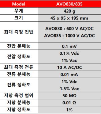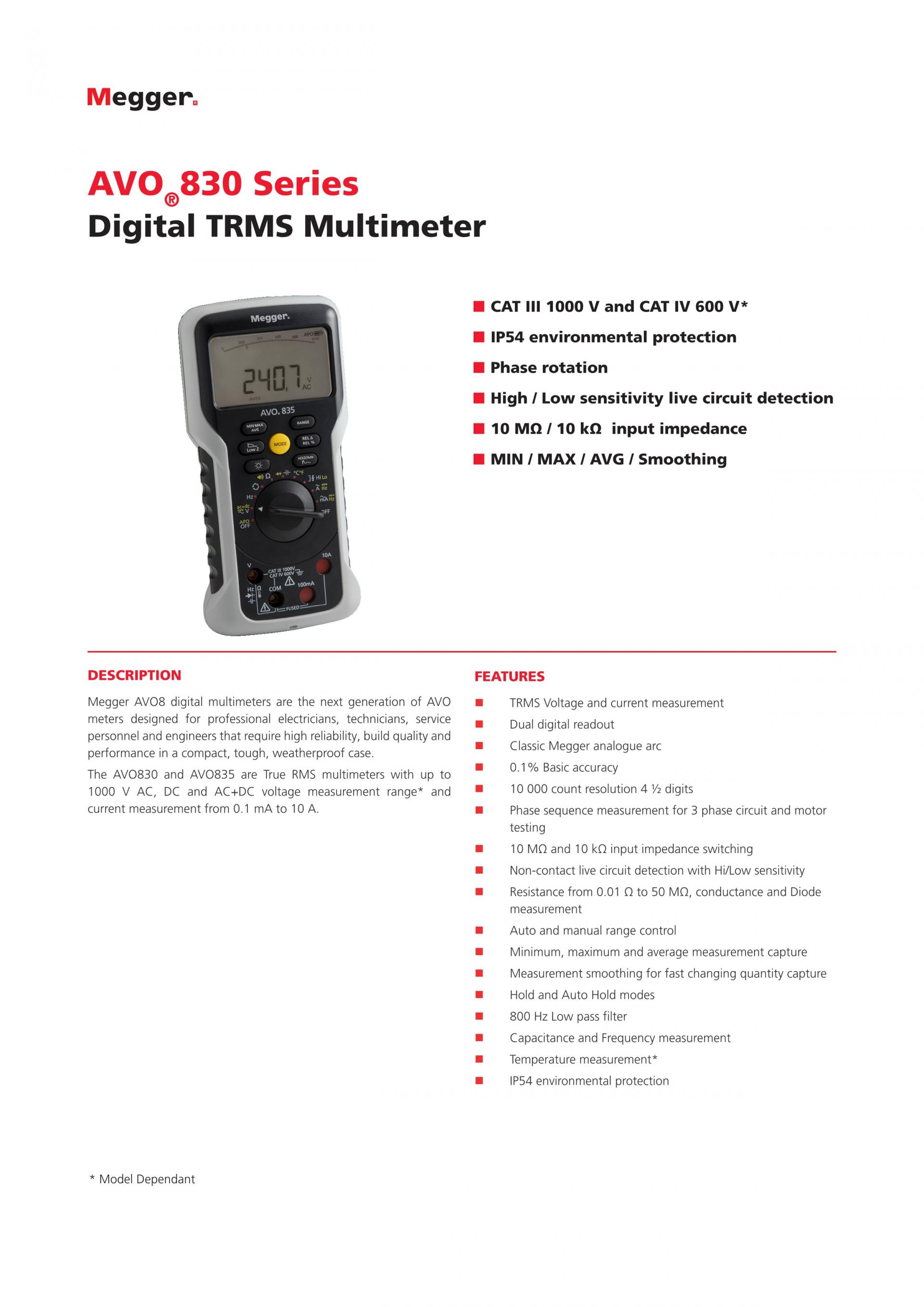 AVO830/835 is a multimeter designed for professional electricians, service staff, and engineers who require high reliability, build quality and performance.
