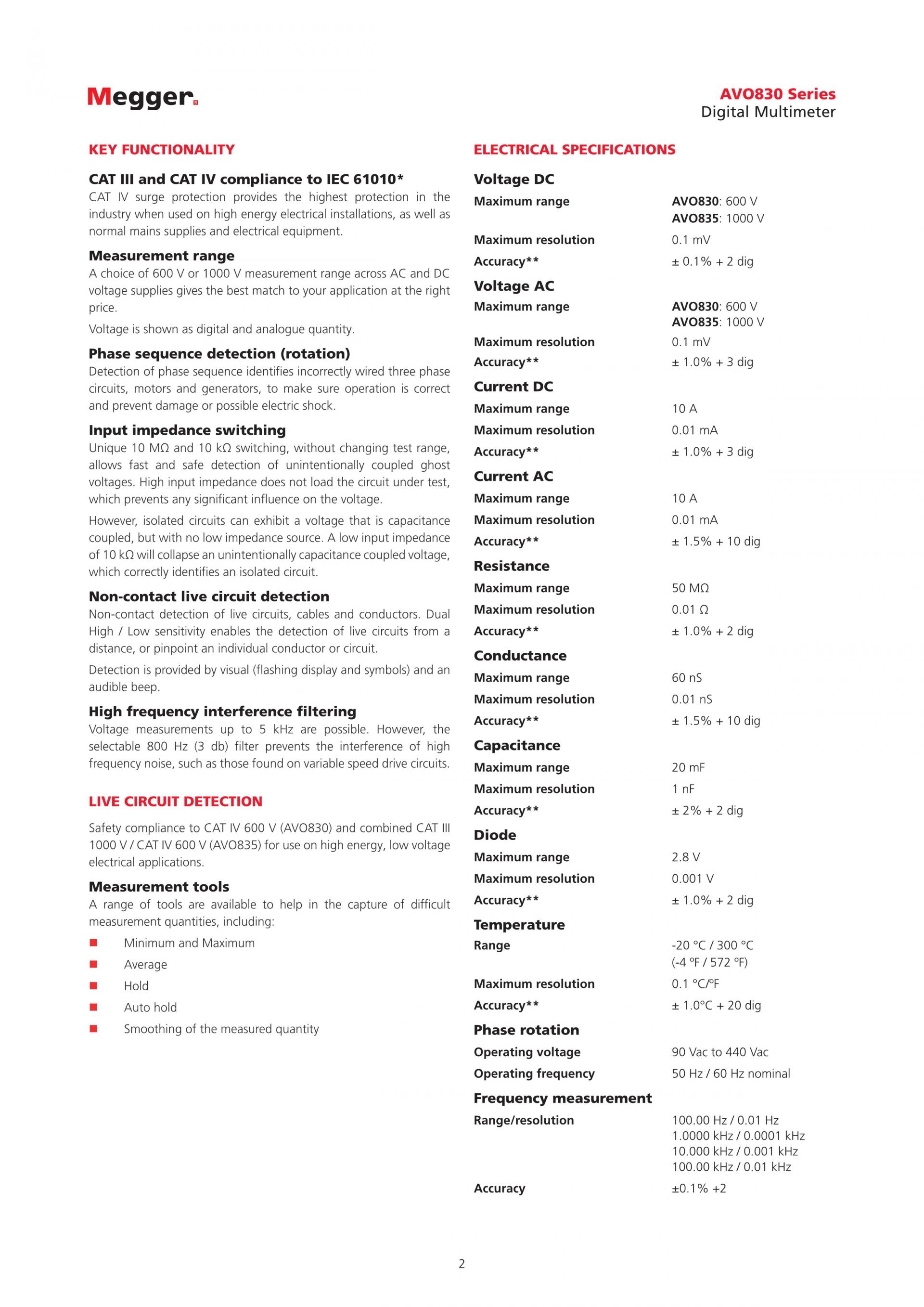 Meger · MEGGER – High-End Multimeter AVO830 & AVO835 – High-End Multimeter
