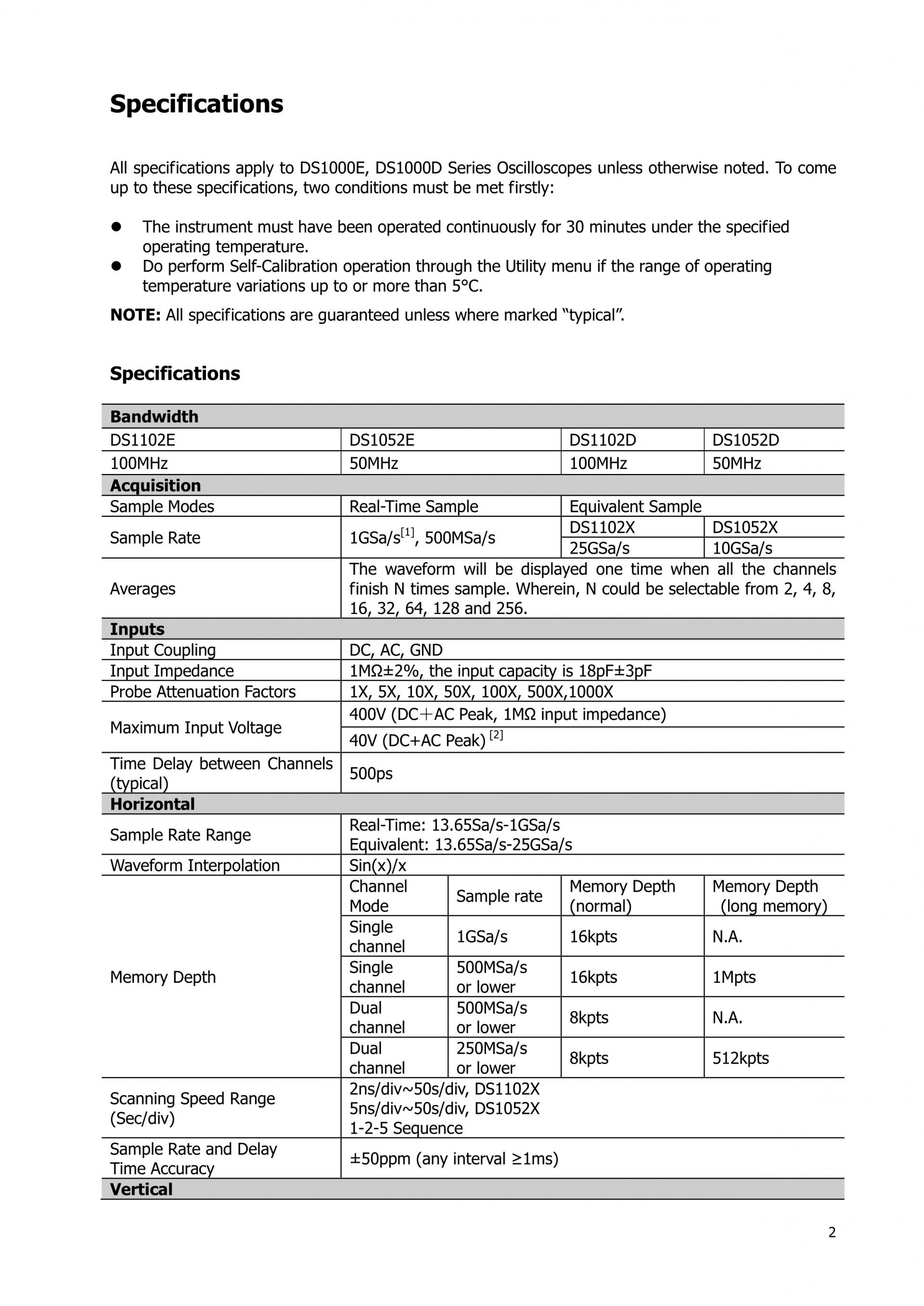 DS1052D · DS1102D2CH 2-CH 2 CHANNEL 50 MHz 100 MHz 50 MHz 100 MHz