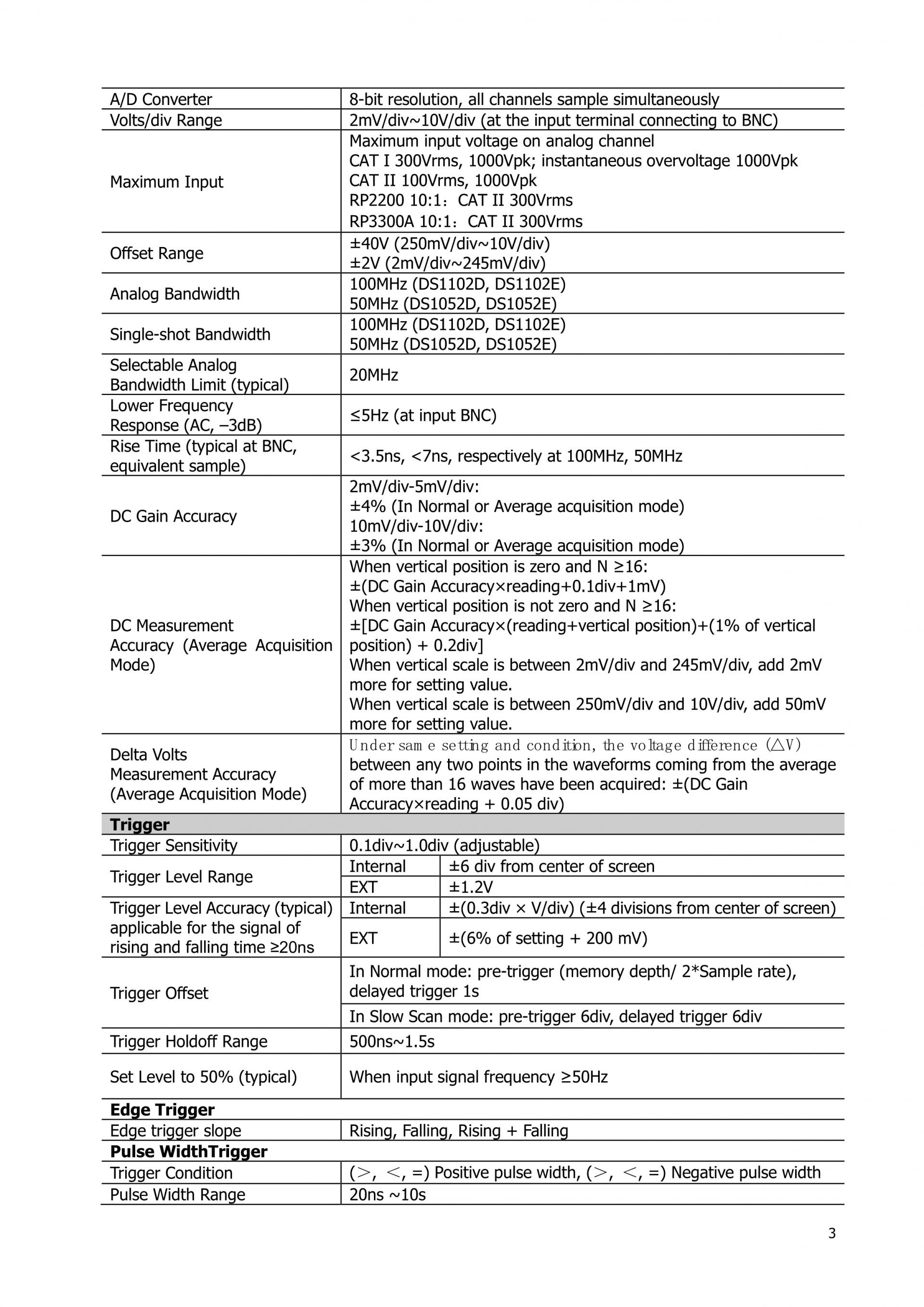2 Channel / 50 MHz Digital Oscilloscope 2 Channel / 100 MHz Digital Oscilloscope Digital Channel ––Sampling Rate 1GSa/s1GSa/s Signal Generator ––Analog Channel 2 Channel Frequency Band 50 MHz 100 MHz Maximum Memory Size 1Mpts 1Mpts Wave Capture Rate –